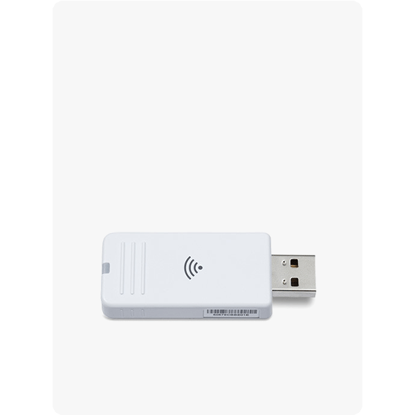 Adaptador Wi-Fi de alta velocidad para proyectores Epson compatibles. Ofrece conectividad inalámbrica en bandas 2.4