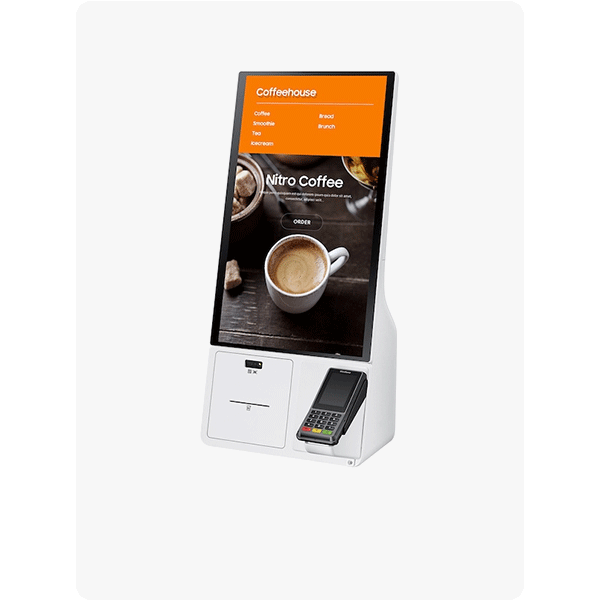 Kiosco digital interactivo de 24” diseñado para aplicaciones comerciales, autoservicio, retail y hospitalidad. Ofrece pantalla